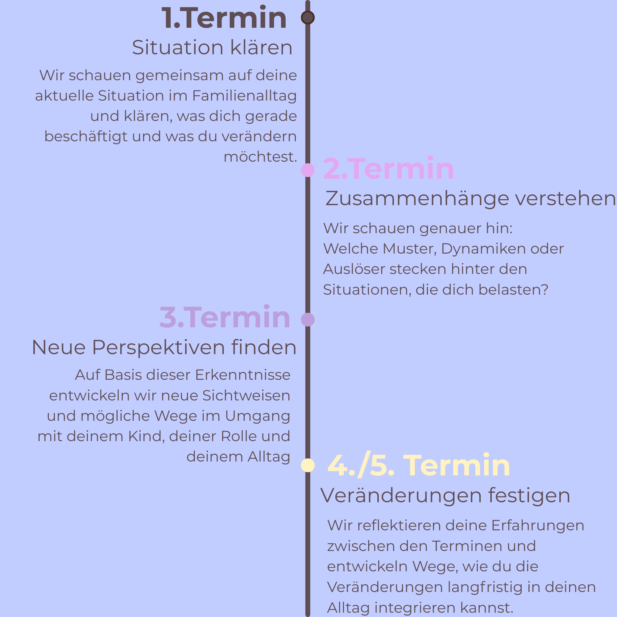 Manche Themen lassen sich nicht in einem einzigen Gespräch klären. Veränderungen brauchen Zeit, Raum zum Reflektieren und die Möglichkeit, neue Wege im Alltag auszuprobieren.